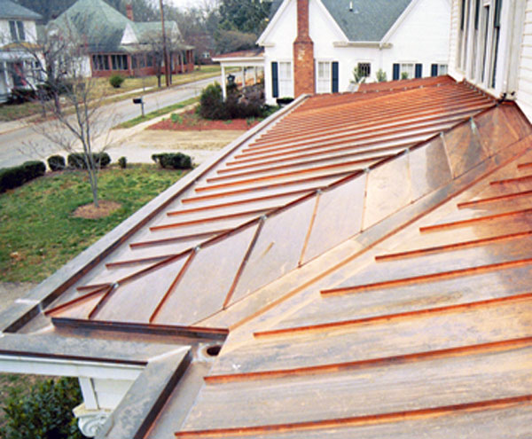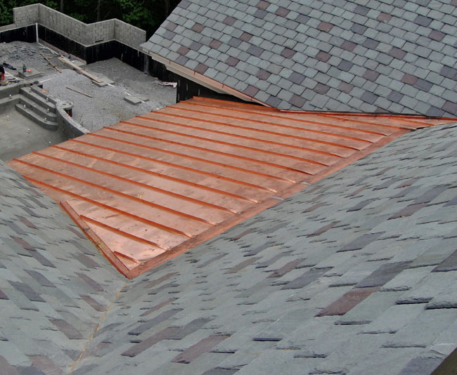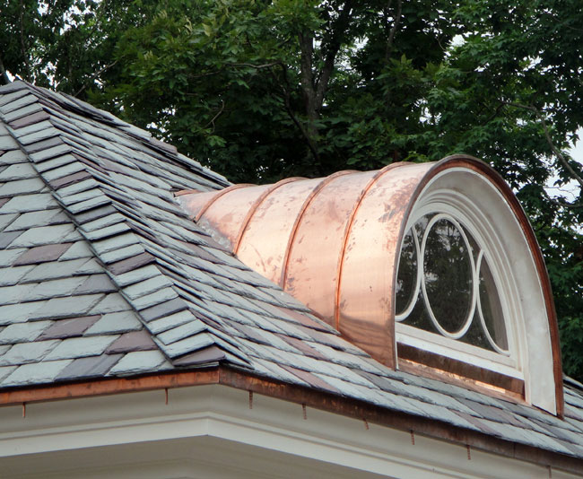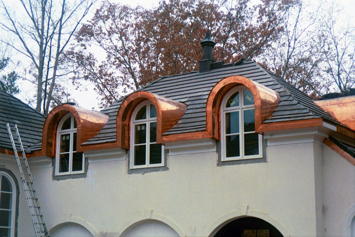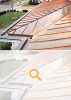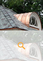 Because it's often provided in sheets, copper requires a bit of custom work to put in place. Still, it's among the most affordable of premium roofing materials. It's also among the most versatile of materials because it can be used for flashing, gutters, and ornamental building elements. In fact, RSI craftsmen have been known to replicate, on site, fixtures like vintage conductor heads out of new copper for clients' historic homes. In addition to the functional attributes of copper favored by our installers, copper's unmatched beauty, which only gets better with time, is a favorite of RSI clients. We're eager to work with any client whose plans include copper roofing, trim or accents. We assure you a custom job you'll be pleased with for decades to come.